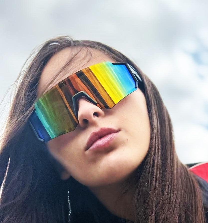 Il trattamento multistrato della lente crea un effetto specchiato multicolore che cambia sfumatura a seconda della luce: dal blu al viola, dall’oro al verde, per un look che unisce performance e stile.